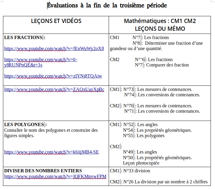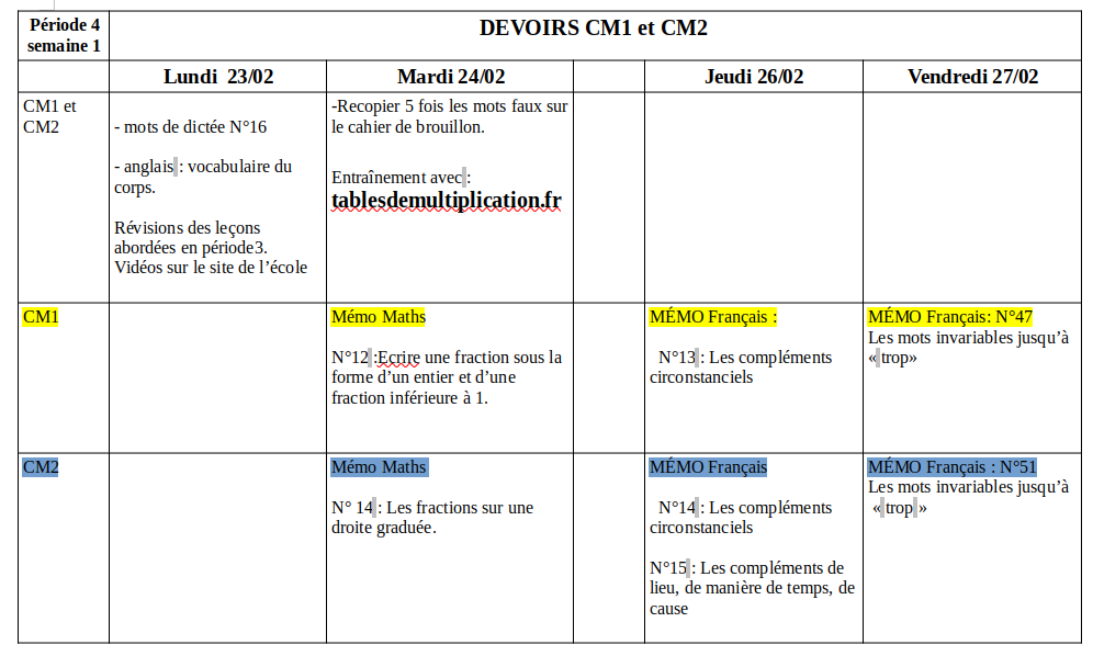 Devoirs CM1/CM2 MME LUCAS