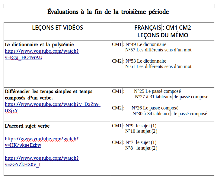 Devoirs CM1/CM2 MME DOBREMEL - MME PICAUD